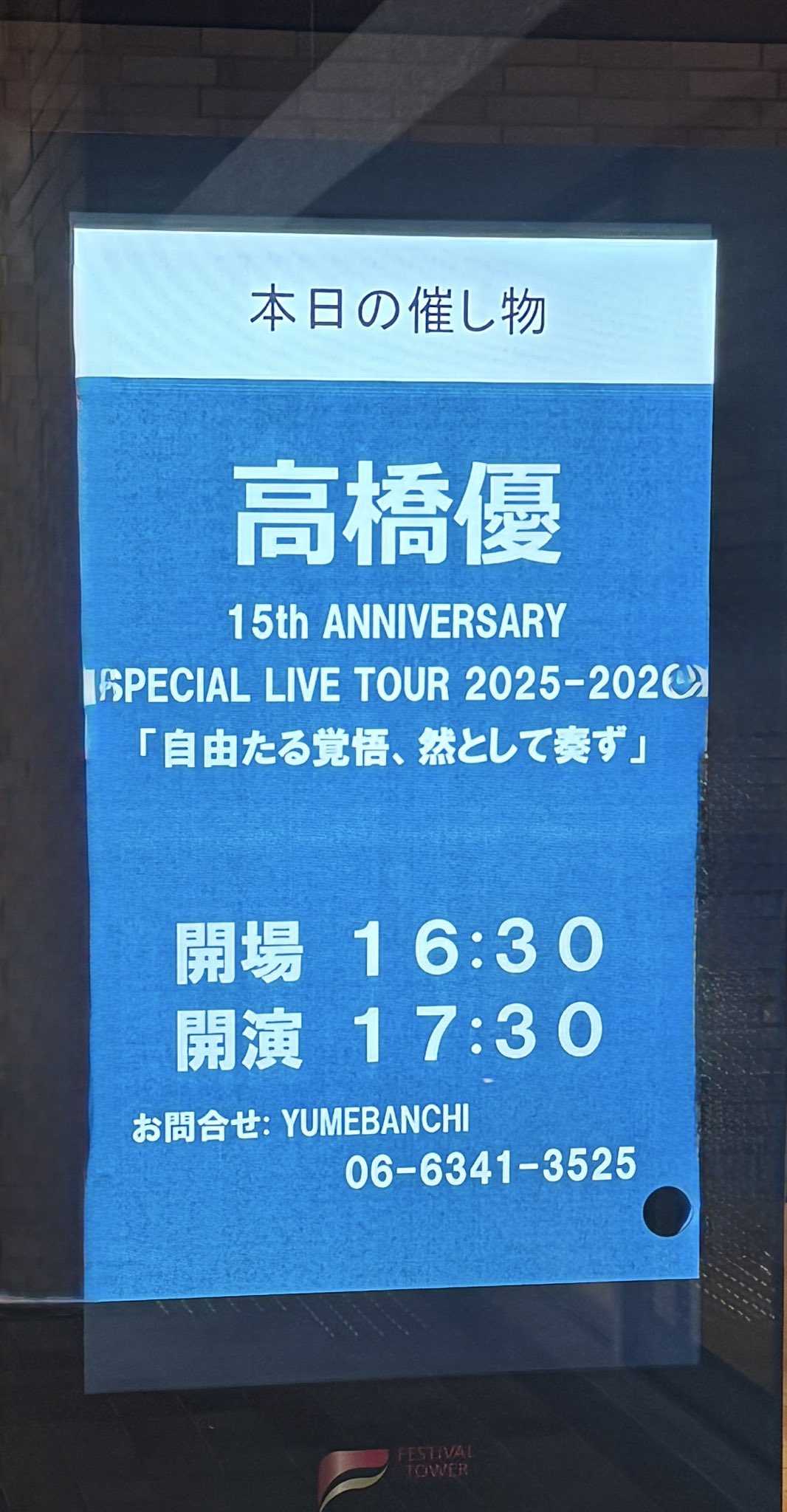 大阪 フェスティバルホール。高橋 優さんのライブ。初めて行ってきました。3階席で、すごく見晴らしが良かった。好きな歌も聴けて、楽しかった。